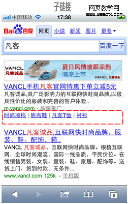 (设计理念:设计广告子链接,满足了用户的多方面的搜索需求,让用户了解到更多与广告相关的热门子内容,减少用户二次搜索操作。)