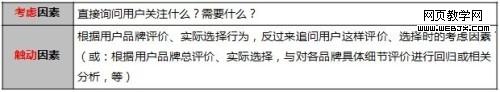 1、考虑因素易懂易操作,但其结果一般存在2个主要问题点:a.用户往往回答的是其认为很重要的因素,却不一定是影响他实际选择的因素;b.有时用户自己也不一定能说清楚,选择一类产品时,到底会考虑哪些因素