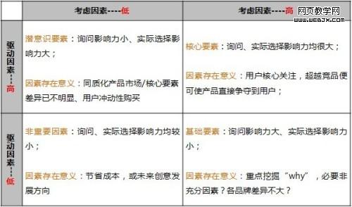 它采用了最常用的“直接询问法、结果推导法”了解用户需求,然结果存在一定差异,如:直接询问用户时,商品折扣、品质、售后服务是最重要考虑因素;用户实际选择时,这三个因素重要性明显下降,反而网站知名度、用户口碑、周围朋友都在上面买等因素触动力更大,作为产品运营,这些数据到底该怎么用?哪些因素才能对“争夺用户、实现利润”有明显效果? “商品折扣、品质、售后服务”是需要着重关注吗?