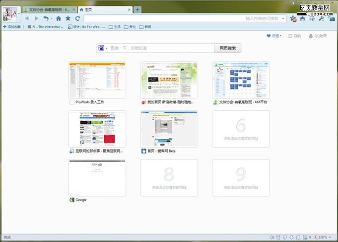 内嵌式引导是将帮助引导直接嵌入到界面里,在需要引导的时候起到引导帮助的作用,如下面的QQ浏览器的九宫格没有添加网页的空白位置上引导操作“点击添加你喜欢的网站”,引导用户可以通过点击添加。