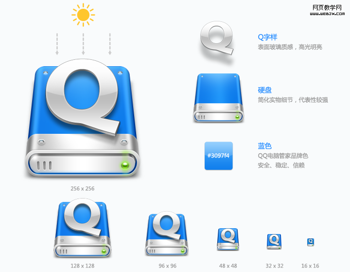 LOGO展示 为了与名称紧扣,降低用户认知门槛,最终采用了最简单直接的表现方式:Q + 盘。