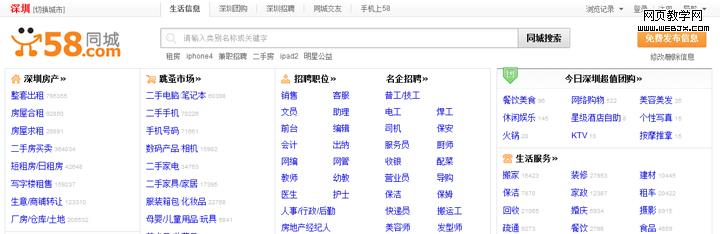 有两级目录:城市目录、功能目录。用户通过这两级目录很容易找到想要的功能。但使用这些功能大都不用注册,所以首页并没有明显的登录模块。