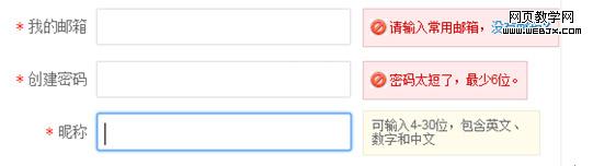 在处理表单过程中,会考虑提示信息所在位置,包括默认提示,出错提示,正确提示等,如果提示风格不统一,会中断用户行为,页面表单填写过程中的流畅度非常重要,为什么会提起这一点,因为在实际工作中,如果没有交互设计经验,不论产品还是设计人员都经常会遗漏表单相关的各种提示信息,但这会影响页面构建过程中HTML的结构,因此如果前期发现产品文档,或者设计稿都没有表现出相关内容,不妨提醒他们务必考虑并添加好,减少后期调整页面结构的冗余工作量。