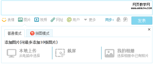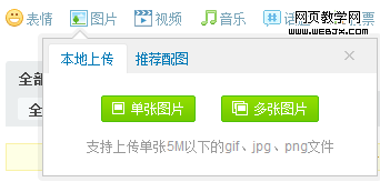 ↑ QQ空间的心情发布框首先让用户选择图片来源