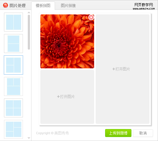 上传图片前一般可以:查看已上传相片、选择布局、来源等。