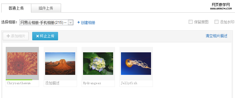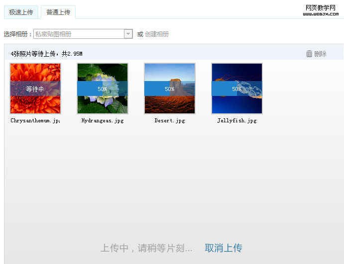 ↑ 网易相册上传图片过程中可以查看上传进度,可以添加图片描述