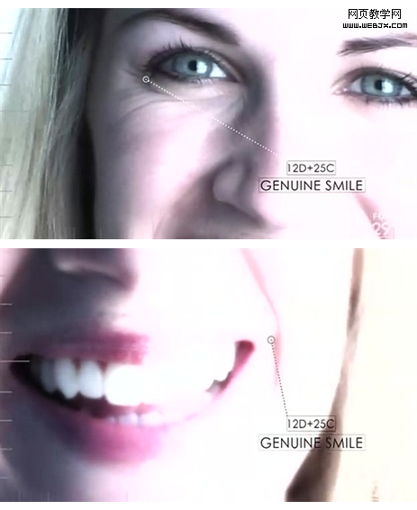 图三:真的笑容,表现在眼角纹的上翘