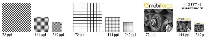 下图显示了在像素密度为72,144和240ppi的设备上,100×100像素的图像的显示效果。随着图片越来越小,图像的形状和一些细节都有所变形。