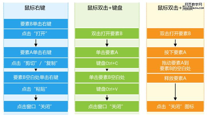 【鼠标双击+拖放】操作很直白,用户可以见证要素A进入要素B的全过程。