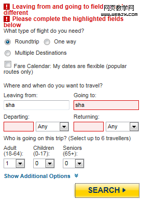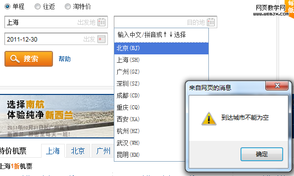网页表单交互设计细节:机票搜素表单的校验(2)