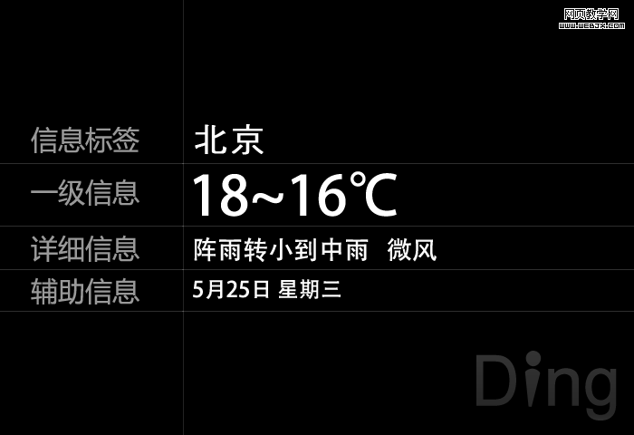 我们发现这类信息最多不会超过四个主要维度来完成信息传达,事实上最核心的信息维度不超过3层。所以我们大胆的将信息进行了提炼,在呈现上通过字号大小、位置关系来协调一级信息、信息标签、详细信息、辅助信息的传达效果。