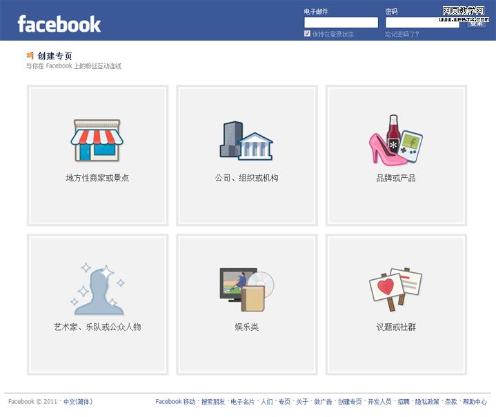 Facebook社交网站页面里的一些图标也采用了平面的手绘风格。