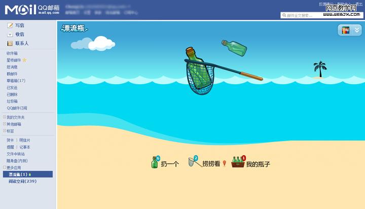 QQ邮箱漂流瓶—贴心的情感化设计(界面和瓶子等物件都采用手绘表现)