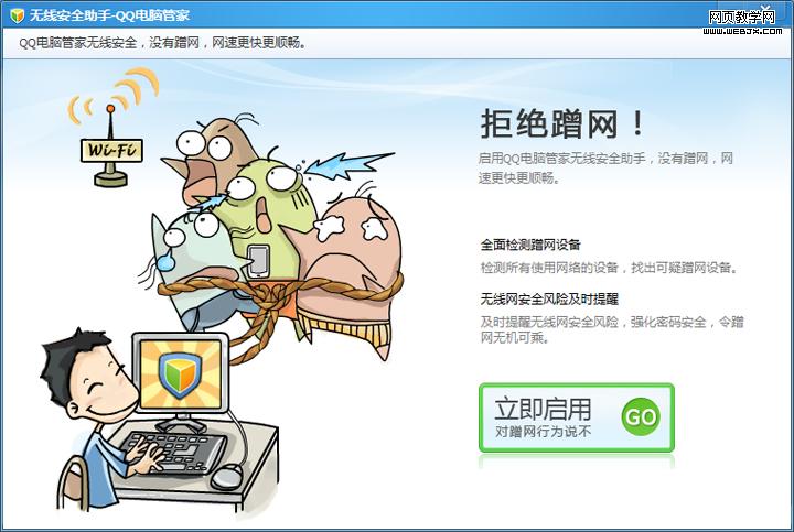 QQ电脑管家无线安全助手,极其有趣幽默的漫画风格,因趣味性带动用户的情绪化反映。