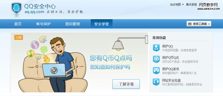 QQ安全中心404错误提示页面,采用可爱的拟人化手绘表现手法。让一个错误的页面变得亲切。