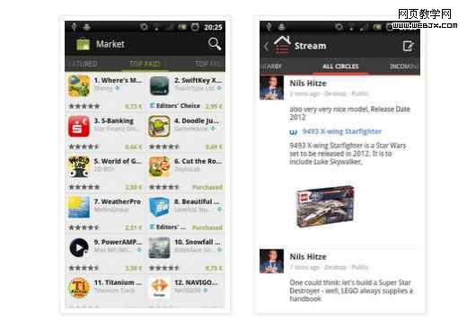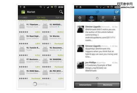 下面是两个例子: Android Market 和 Twitter。