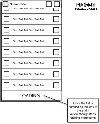 应用可能需要处理大量的信息,比如 Twitter 的时间线。对于用户来说,这意味着列表长度几乎是无尽的。目前,许多应用已经采用了比较通用的处理方法,当下滑到列表已缓冲条目下部的边界时,自动加载更多的信息。