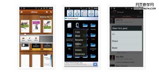 下面的三个例子:Aldiko,Astro 文件管理器和 Google+。