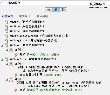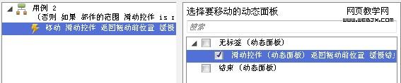 1.如用例1中:选择移动动态面板→选择“滑动控件”动态面板→移动选择沿X轴移动。就像这样: