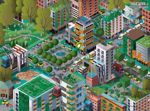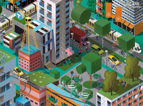 Nils-Petter Ekwall,一套关于城市书籍的插画,精密的排列,鲜艳的颜色,有趣的构图……插画上的城市看上去就像通话中的世界一样漂亮。尽管画面元素众多,作者通过了透视法把元素安排得层层有致。裁切局部都可以成为一个独立的画面,非常出色。