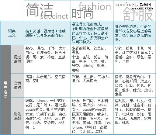 在生成情绪版的同时,用研将所有“衍生关键词”按照三个维度去分类整理。这个过程的目的是帮助项目组成员从用户的角度去理解“抽象关键词”的“具象诠释”。所有的关键词可按照以下三个维度分类——