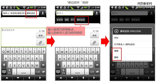 某些特定条件的输入内容本身就是一个单位,如收件人的邮箱地址,收信人的电话,好友的名称等。将每个单位转化为控件按钮,可以方便用户对单位信息进行编辑操作。