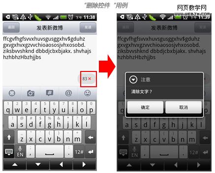 手机中关于文字输入的字数有很多限制,比如每条手机短信限制160个字符,微博限制140个汉字等等,用户常常会因为不知道限制条件或者忘记了限制条件而进行了误操作,浪费了时间。那么在输入框中增加提醒控件,提醒用户目前还有多少个字符可以输入,避免用户输入超出字数限制。