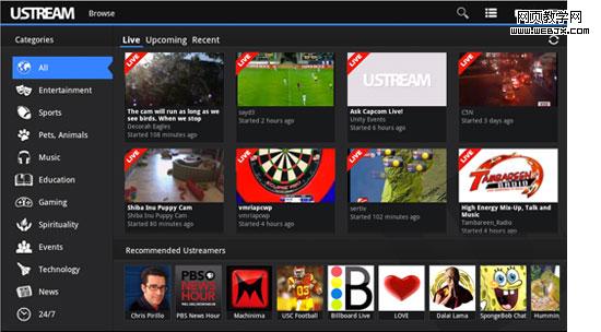 Ustream的拆分视图,类别选项在左,内容在右