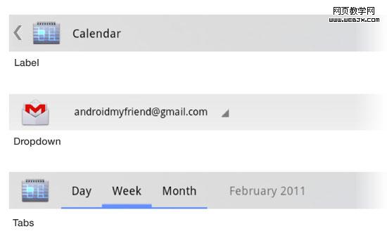 蜂巢继承并发展了许多在Android2.0引入的设计模式。也许你对这个设计模式还不太熟悉,但它们就像Android定义的那样,是一个“常见问题的普遍解决方式”。设计模式是一个UI设计的重要规范,便于营造统一的用户体验,并提供给设计者和开发者一个模板。你不必担心什么,因为它们是可以定制的。
