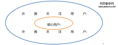 我们在分析用户的时候,总是习惯分层来分析用户,与传统的基于人的SNS社区中用户地位基本一致(除了少数的意见领袖)的情况所不同的是,轻博客社区的用户中有一个很奇特的用户圈效应。我们发现它的用户群是呈现如下的用户圈效应。分成核心用户圈和外围关注用户圈。