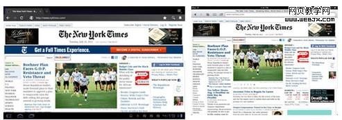 左图是在典型的10英寸Android平板电脑上的横向视图,右图是在iPad上的。