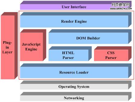 首战不利,大家心里都不是滋味,虽然通过后几个月的努力,最后我们决定将1.2版本的客户端以beta 版本的形式发布,并公开提供了下载,除了拍照上传这个功能让我们值得高兴一下之外,其它功能也许只是让我们感觉能用而已。JavaME的失利让我们从自负中清醒,骄兵必败。经过一段时间的讨论与分析,大家一致认为,我们需要一个手机浏览器,人人的业务不论在PC端还是手机端,最理想的展现方式还是浏览器,于是我们开始手机浏览器研发道路,我们花了3-4个月的时间,开发出了我们第一个基于JavaME的浏览器引擎,代号:Across(为什么起这个名,后面说)。浏览器引擎架构参考Webkit,如下图: