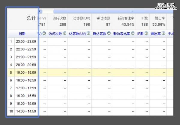 除了表头行的固定,表格的列进行固定也经常被采用,像就是百度统计这样,第一列是时间需要进行对比,固定了第一列使得阅读起来存在一个基础。