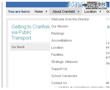 这里有一些例子的链接,点击时或划过的面包屑路径,打开一个子导航面板中列出的附加属性或地点。