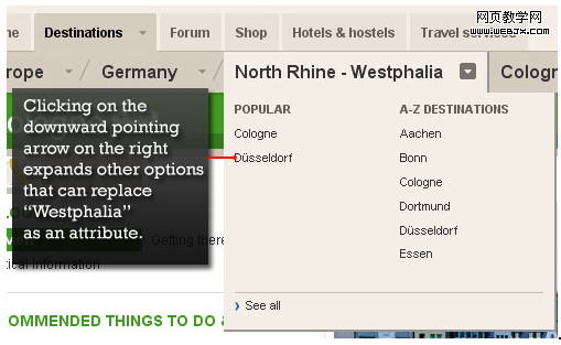 Lonely Planet也有一个弹出的面包屑导航,您可以在其中更改属性。