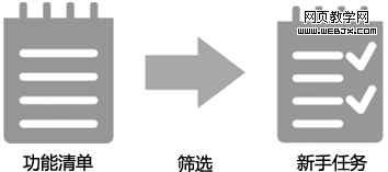 我们首先为产品整理出一份功能清单,然后从中筛选出新手用户的任务。