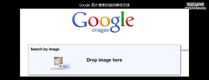 在模仿桌面交互的网页中,特定模块或内容的拖放需要通过趣味瞬间反馈:鼠标悬停态、放置被接受态、放置被拒绝态、拖动态等等,借此让用户知道那是一张“可以放东西的桌子”。例如Google的图片搜索里,当你把图片拖到页面时,搜索框会向你招手。