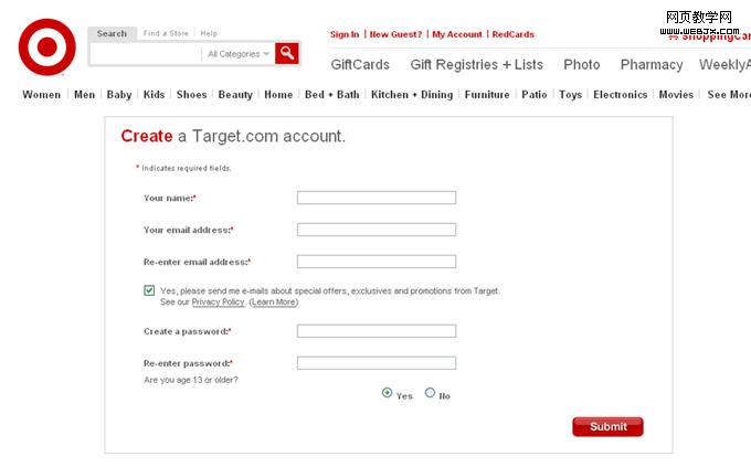 3、尽量左对齐文本和字段区域。访客一般从左侧来找到一行文本的起始端,右对齐的格式就让人很难定位一行的开始,这会明显增加表单的复杂性。左对齐的表单字段区域更能让人从视觉上掌握整个布局,从而利于快速浏览。