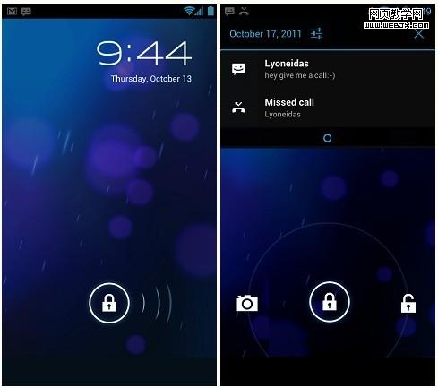 从解锁界面可以看出,4.0使用视觉化元素引导用户进行简单直观的手势操作,精致的动画和反馈增加了系统的互动参与感和趣味性,全新的字体提高了高分辨率界面的可读性,显得更为优雅和现代。