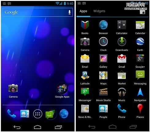 Android4.0继承了3.0的设计多任务、丰富的通知、可定制的主界面、可调整大小的控件、用于交互和分享的互动性元素。应用程序的结构日趋成熟,几乎没有发生变化,看看系统主要界面是如何体现其设计目标:简洁、美观和更为智能。
