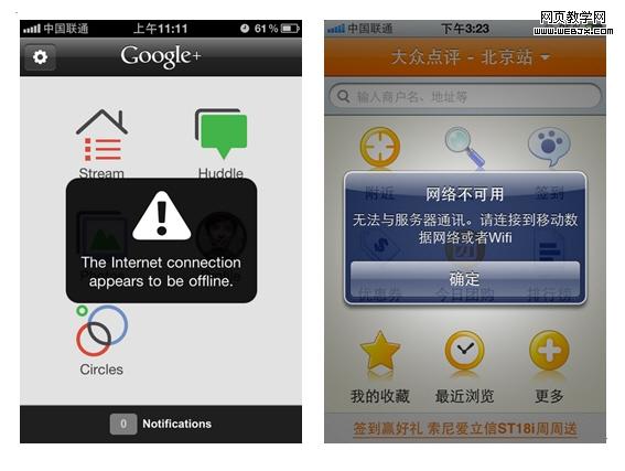3.预置一些推荐信息(就是通常说的造些信息,取代空白页面),这样没有网络的情况下也可以看到相关信息。比如:推荐些热门信息,信息内容根据app的类型确定(如图片,书籍、地点等等)这些信息只需要简单的列表,具体信息可以当用户点击后另外加载。遇网络问题显示“网络连接”提示。