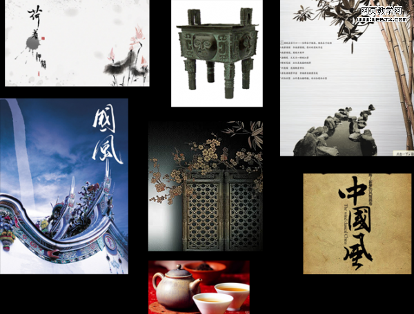 标志性的元素:水墨风格、书写体、古代物品(瓷器,鼎之类)
