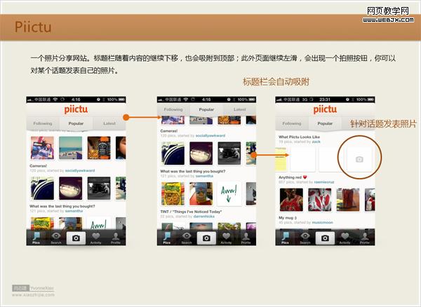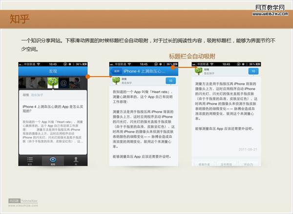 手机的界面有限,对不影响界面内容的控件,悄悄的帮助用户隐藏,无疑是一个很贴心的操作。这里绝对知乎和PIICTU的导航栏的隐藏设计给自己的体验很好。