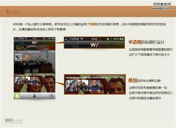 With/的层叠设计和透明效果,让人对界面信息的排布重新思考。