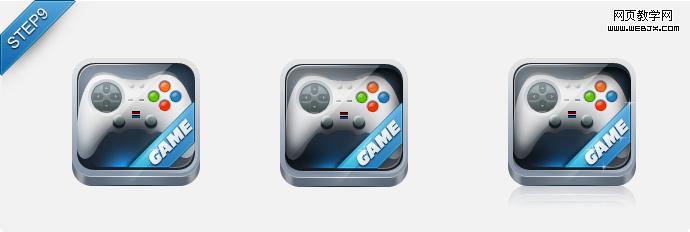 Stept4£º½ÓÏÂÀ´ÎÒÃÇ¿ªÊ¼»æÖÆÓÒϽǵÄÀ¶É«ÓÎÏ·±êÇ©¡£¼òµ¥µÄÀ¶É«²à45¶È½¥±ä±ã¿ÉÍê³É»ù±¾ÐÍÅäÉ«£¬µ«ÊÇΪÁ˽õÉÏÌí»¨£¬ÎÒÃÇÐèÒªÔÚÀ¶É«½¥±äµÄ»ù´¡ÉϼÓÉÏÓë¸ß¹âÇøÍ¬ÏòµÄ¸ß¹âÁÁ±ß£¬»æÖÆ·½·¨Óë֮ǰÌáµ½µÄ»æÖƸ߹âÇøÓòµÄ·½·¨Ò»Ö£¬Í¬ÑùÐèÒª“¶þ´Î»ìºÏģʽµþ¼Ó”¡£½ÓÏÂÀ´Ìí¼Ó“GAME”µÄÎÄ×Ö£¬Ð§¹ûʹÓý¥±ä+ͶӰ¼´¿É£¬ÖµµÃ×¢ÒâµÄÊÇ£¬½¥±äÉ«Çø¸ô²»ÒªÌ«´ó£¬µµµÄ¼´¿É£¬Í¶Ó°Ñ¡ÔñºÚÉ«“ÕýƬµþµ×”£¬¾àÀë1px£¬´óС2px¼´¿É¡£Í¬Ê±ÔÚ°µµ×Éϲã¼ÓÉÏÀ¶É«µÄ¸ß¹â£¬±ã¿É¸øÍ¼±ê´øÀ´²»Ò»ÑùµÄÌÞ͸ÖʸС£