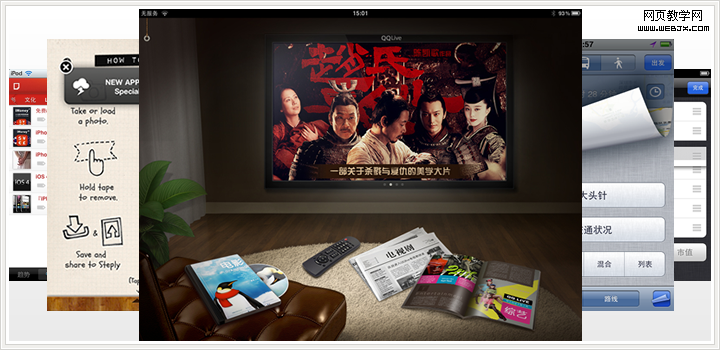 这里可以是详细的帮助界面也可以是隐喻图形化的引导(隐喻要符合用户的心智模型),例如分页的圆点标识,或者切换页面露出一部分内容,可长按的系统icon,翻起的页脚升,甚至动画等等。这里的提示程度自己拿捏,效率型应用,尽量做到清晰可见,即看即点。沉浸型应用可以适当预留探索的空间,让用户自己去发现,带来预期之外的惊喜。比如QQLiveHD首页拉绳的晃动。但是,要注意的是隐藏手势和快捷手势不能影响主操作流程,可以作为辅助手势来使用。