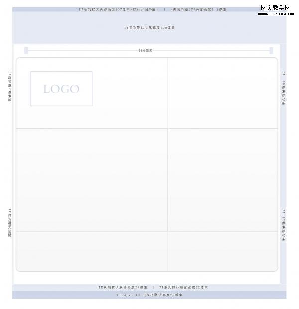 首先在这里想要再次为新人提下,现在霸占互联网最小分辨率的还会是1024用户(特别是中国),加之IE、FF主流浏览器的比例,由此特地整理了一个解说小图。