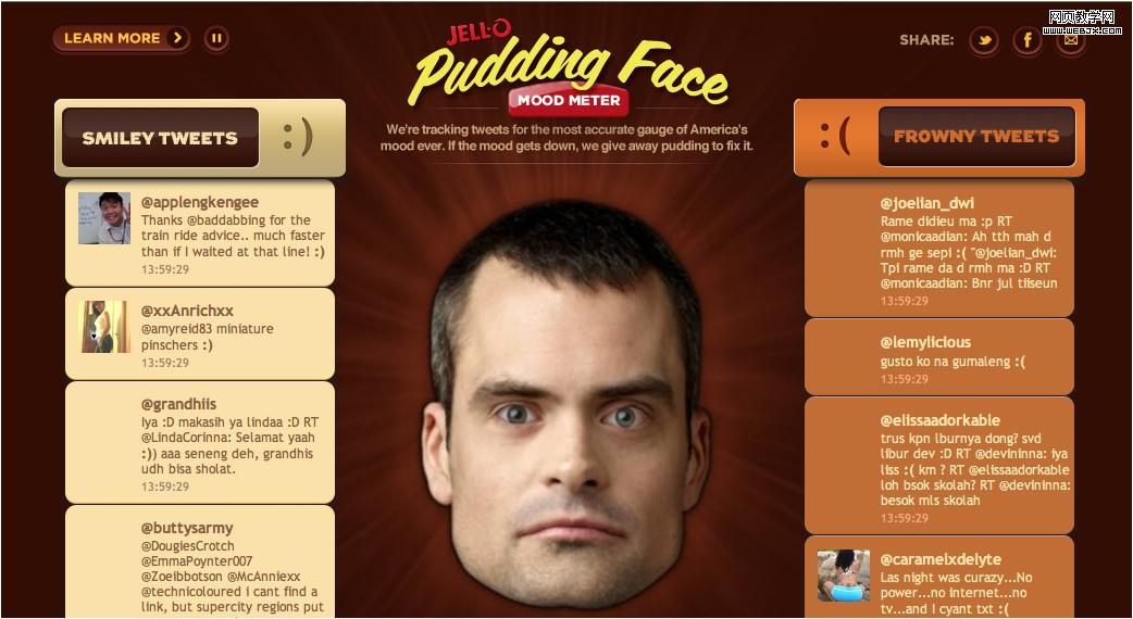 美国Kraft的Jell-O布丁品牌最近做了件很有趣的事,他们试图测试并改变全美国的心情,为悲伤的人们带来快乐,他们搜索Twitter使用者在社交网站上微笑