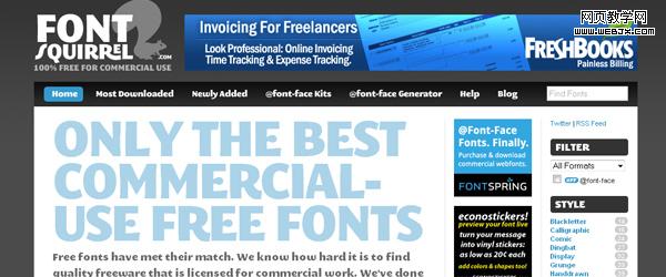Font Squirrel或许是现在最流行的文字替换资源。Font Squirrel让你忘掉所有对字体授权可能有的担心,因为它提供的所有字体在商业上都是免费的。这个网站有数百种字体供选择,从sans-serif到novelty风格的字体都有。