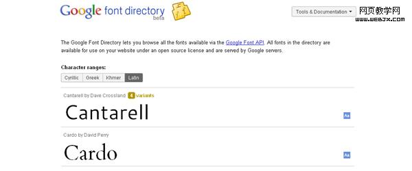 Google Fonts API的使用结合了他们自己非常独有的字体目录,目录中的所有的字体都是开源的,所有人都能使用。这个目录一直都在扩展和增长,目前已经包含了超过200个例子。